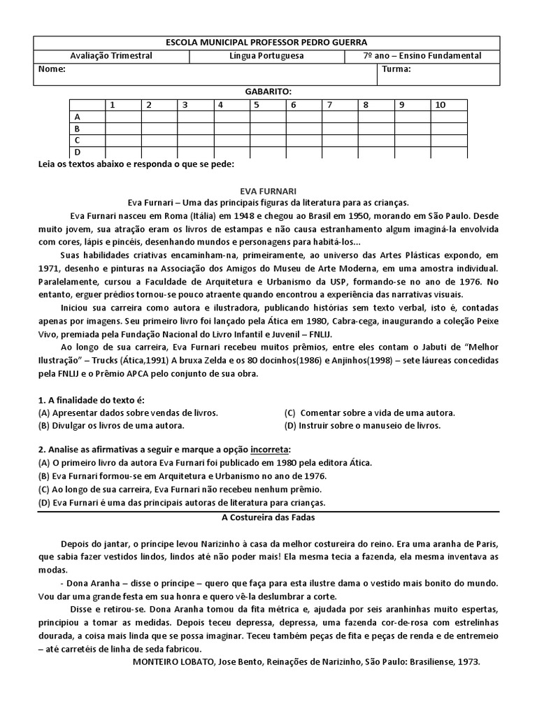 Avaliacao Questoes De Interpretacao De Texto Tatuagem Livros