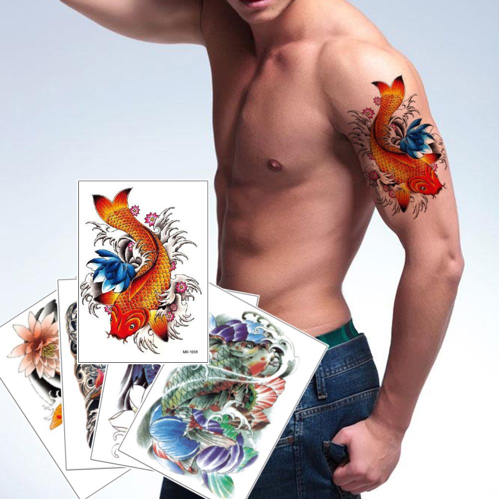 3d Transferencia De Agua Do Tatuagem Da Flor Colorida Peixe Lotus Etiqueta Temporaria Waterproof Body Art Tattoo Carp Falso Transferencia Do Decalque Party Animal Papel De Homimly 4 87 Pt Dhgate Com