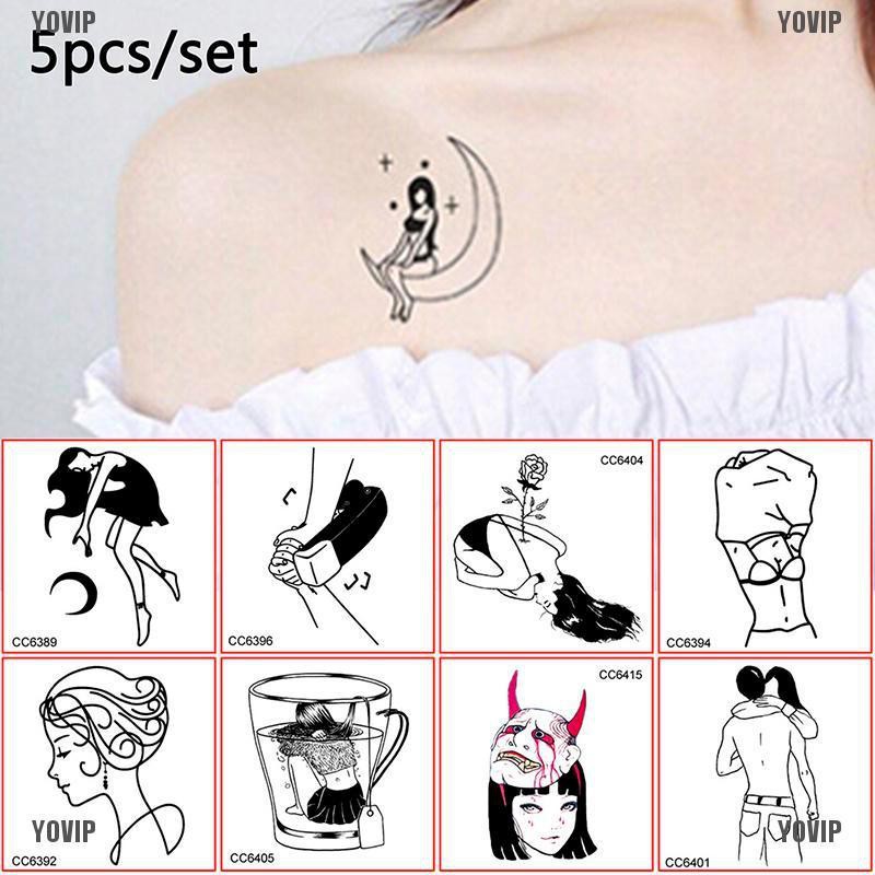 Yovip 5 Folhas Little Vintage School Women Preto Branco Rosto Etiqueta Do Tatuagem Temporaria Shopee Brasil