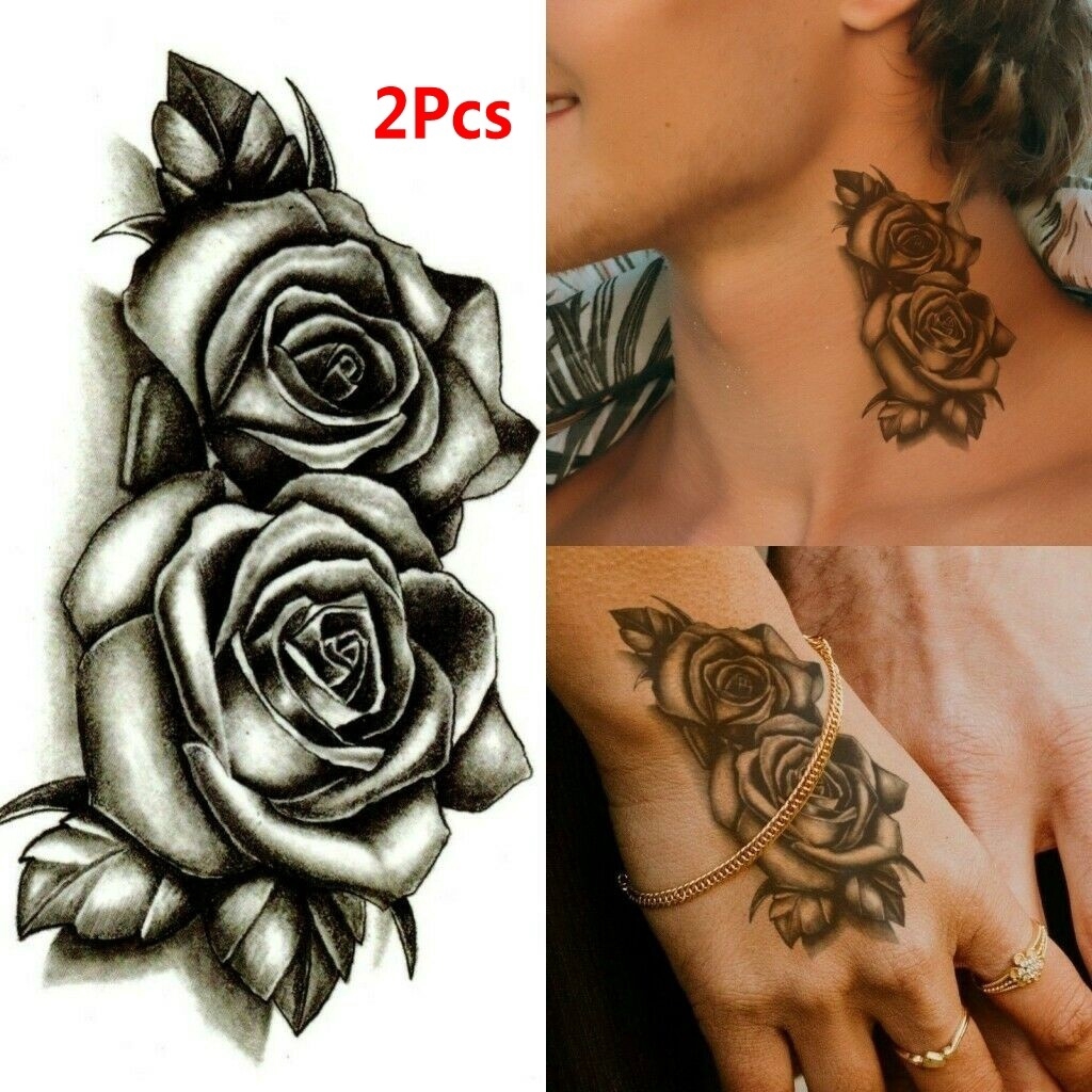 2un Adesivo Impermeavel Tatuagem Temporaria Em Preto Com Rosa Falsa Corpo Shopee Brasil