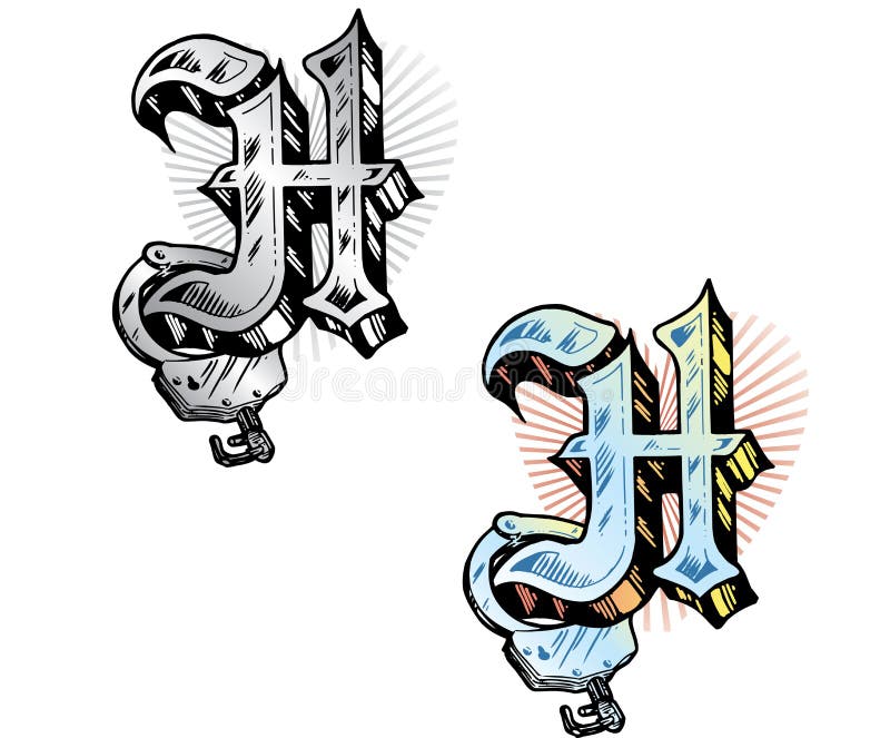 Letra H Do Estilo Do Tatuagem Ilustracao Do Vetor Ilustracao De Letra Elemento 6810108