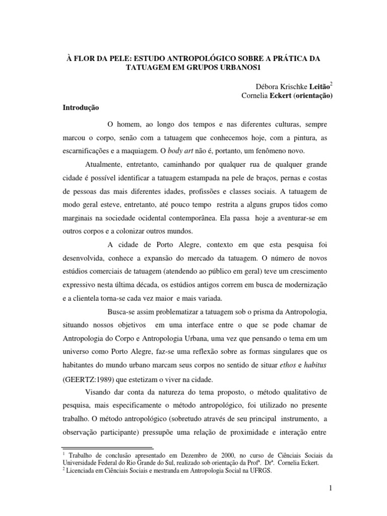 A Flor Da Pele Estudo Antropologico Sobre A Pratica Da Tatuagem Em Grupos Urbanos Tatuagem Antropologia